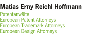 | About MERH-IP | MERH-IP at-a-glance![]() MERH-IP Matias Erny Reichl Hoffmann is a fast-growing Munich-based IP boutique practise which has been launched in 2009 by four patent attorneys having longstanding experience as partners of three prominent international IP firms. With a team of highly motivated 14 patent attorneys, patent attorney candidates and counsels, and a total of 25 staff members we understand ourselves as an IP boutique dedicated to provide outstanding legal services based on profound technical knowledge, excellent legal expertise and, last but not least, utmost care. We enjoy to support and advise our clients in all areas of Intellectual Property covering both prosecution and litigation in patent, trademark and design patent matters and IP related contracts and disputes, always trying to make the most of their ideas, innovations and inventions. This internet presence of MERH-IP will be further edited soon. |